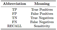 The metrics used for performance evaluation are described below. |