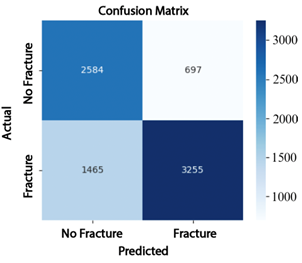 YOLONAS model achieved an accuracy of 97.9%, outperforming all other evaluated methods. Similarly,Wang [9] developed a deep learning-based approach using the Keras library and the NASNetMobile model for detecting bone fractures in the upper extremities. The model was trained on the MURA dataset and achieved an accuracy of approximately 70%, demonstrating the potential of deep learning in medical imaging applications. In another study, Guan et al. [10] used approximately 4,000 images from the MURA dataset and proposed a two-stage R-CNN-based framework for detecting fractures in arm radiographs. The model achieved an accuracy of 62%, demonstrating the potential of R-CNN architectures to support the diagnosis of upper-limb injuries. Although the reviewed studies report promising results in the automatic detection of bone fractures, their findings reveal significant limitations that restrict practical implementation in real clinical settings. This underscores the need to develop new strategies to overcome these challenges. For example, the model proposed by Guan et al. [10] achieved a performance below 80% due to the limited number of images used during training. Consequently, employing a larger and more diverse dataset would be an effective strategy to enhance the model’s robustness and reliability in clinical practice. Image quality represents another limitation identified in the studies reviewed. In these investigations, model accuracy was affected by image noise and insufficient preprocessing. In the case of Medaramatla et al. [8], the images were resized to a square format of 608 × 608 pixels (PNG), and a manual noise removal process was applied to low-quality samples. Although this cleaning procedure improved image quality and model accuracy, it lacks the scalability and robustness required to ensure consistency in large-scale clinical settings. Based on these limitations, the following research question arises: How can accuracy and robustness to class imbalance be improved in the automatic classification of upper-limb bone fractures from radiographic images through the implementation of pre-trained deep learning models? To address this question, pre-trained deep learning models such as EfficientNet-B4 [11], ResNet-50 [12], and ConvNeXt-Large [13] are compared and evaluated using performance metrics including F1-score, precision, accuracy, sensitivity, the receiver operating characteristic (ROC) curve, and the confusion matrix. The primary objective of this study is to determine which of the three proposed models provides the best performance in the automatic classification of bone fractures in the upper extremities. |