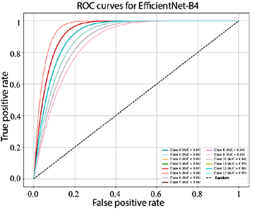 Figure 10. Receiver operating characteristic (ROC) curves for multiclass EfficientNet-B4
