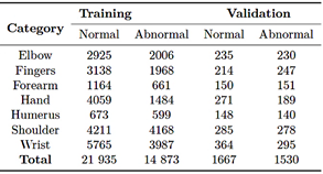 Table 2. Redistribution of the MURA dataset
