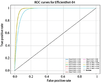 Figure 10. Receiver operating characteristic (ROC) curves for multiclass EfficientNet-B4