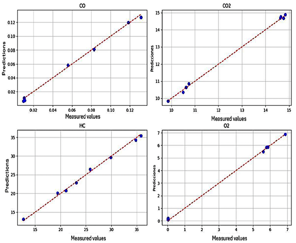 Figure 14. CNN prediction results for CO, CO2, HC, and O2 emissions |