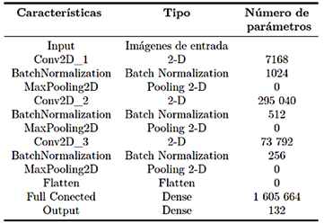 Tabla 3. Características de la CNN