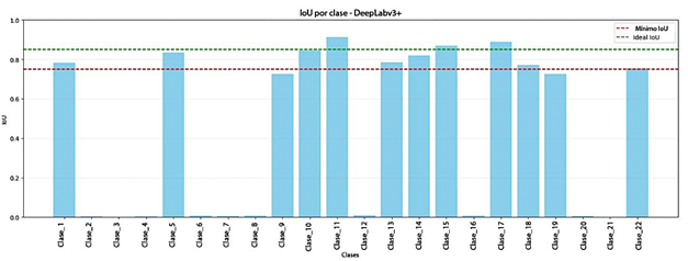 Figura 5. DeepLabv3+: IoU por clase (métricas según la Sección 2.6). |
