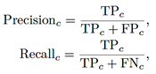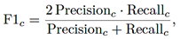 Precisión, recall, F1-score y exactitud balanceada. Para la clase c, ver ecuaciones (3), (4), (5)