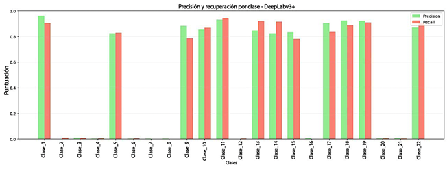Figura 4. DeepLabv3+: precisión y recall por clase.