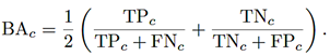 Precision, Recall, F1-score, and Balanced Accuracy. For class c, see equations (3), (4), (5)