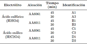 Palabras clave: anodizado, aluminio, corrosión, tribocorrosión. |