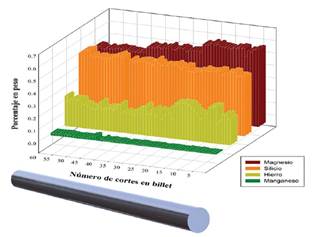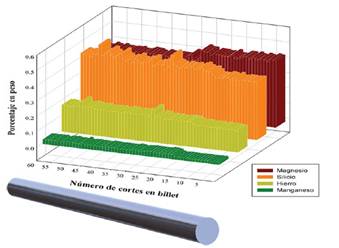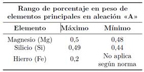 Tabla 1. Rango de porcentaje en peso de elementos principales a controlar durante proceso de colada continua horizontal en aleación “A”.