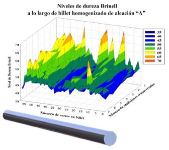 Figura 5. Dureza Brinell a lo largo del billet homogenizado de aleación «A».
