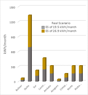 region of Ecuador for the two proposed scenarios, optimistic or expected (Figure 7) and real or measured (Figure 8), based on the data of Table 6.