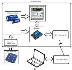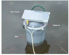 running on a PC process the message and data from the Iridium Transceiver and Xbee transceiver respectively. After the power supply was tested, the components were installed onboard the Buoy Station. The Buoy Station Prototype was deployed at a lake continuously for 30 days, sending and receiving messages through the satellite terminal and Xbee without energy storage problems.