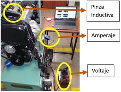Figura 2. Medición de amperaje y voltaje de la batería.
