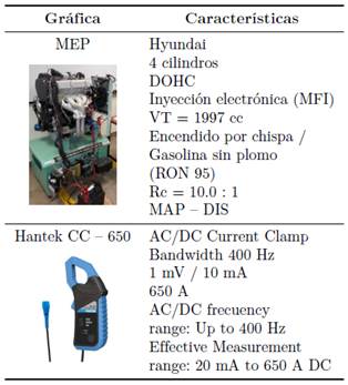 En la Tabla 2 se resumen las características del motor a prueba y las de la pinza amperimétrica aplicada. |