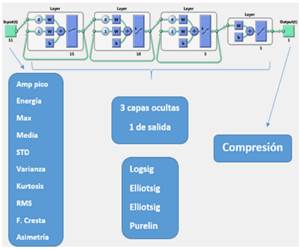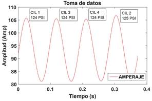 In the present research the explanation of the applied methodology for the determination of the maximum pressure of compression of an engine of internal combustion alternative of ignited provoked (MEP), that is based on a study that starts from the characterization of the curves of the amperage rating of the starter motor. A protocol for data acquisition and subsequent statistical analysis is applied. The statistical values of the signal as energy, average, standard deviation, variance, kurtosis, asymmetry, maximum, minimum and crest factor are selected in function of the greater contribution of information for the characterization of the experiment; these values generate databases that are applied for the creation and training of a recurrent artificial neural network (RNAR) in which an absolute error of less than 2% is obtained. In the first instance, the test methodology is applied in an engine assembled in a didactic bank and then the application of the method is applied in vehicles. |