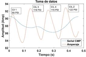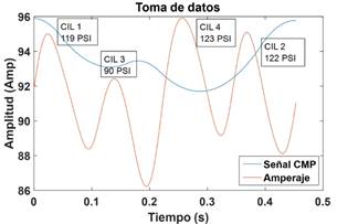 Figura 6. Toma de datos motor con variación de compresión en el cilindro 3. |