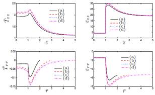 normalized stress and the components of the strain, for different values for