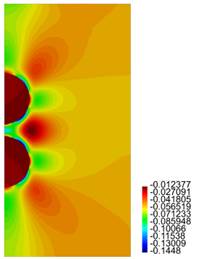 In the present paper the behaviour of a hyperelastic body is studied, considering the presence of one, two and more spherical inclusions, under the effect of an external tension load. The inclusions are modeled as nonlinear elastic bodies that undergo small strains. For the material constitutive relation, a relatively new type of model is used, wherein the strains (linearized strain) are assumed to be nonlinear functions of the stresses. In particular, it is used a function such that the strains are always small, independently of the magnitude of the external loads. In order to simplify the problem, the hyperelastic medium and the inclusions are modelled as axial-symmetric bodies. The finite element method is used to obtain results for these boundary value problems. The objective of using these new models for elastic bodies in the case of the inclusions is to study the behaviour of such bodies in the case of concentration of stresses, which happens near the interface with the surrounding matrix. From the results presented in this paper, it is possible to observe that despite the relatively large magnitude for the stresses, the strains for the inclusions remain small, which would be closer to the actual behaviour of real inclusions made of brittle materials, which cannot show large strains. |