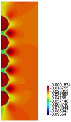 The inclusions are separated to each other by the same distance h. As in the previous case, they are modelled using (10), and the center point for all the inclusions is located in the center of the cylinder.