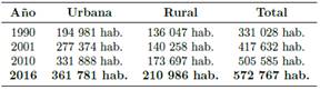 porcentaje de contaminación con Para la aplicación de la encuesta se realiza la proyección de la población para el año 2016 empleando el método parabólico [5], basándose en la información de los censos de los años 1990, 2001 y 2010 [6] como se muestra en la Tabla 1.