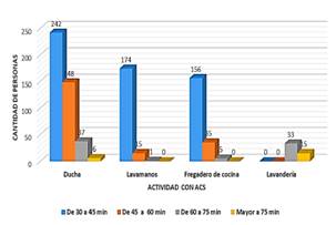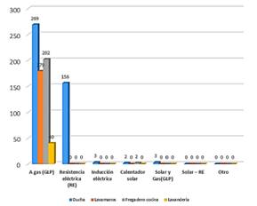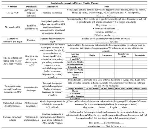 Para la recolección de datos se aplica el cuestionario de acuerdo con el análisis realizado en los párrafos anteriores; un grupo de encuestadores visitaron los hogares y solicitaron se complete el mismo. La cantidad de energía que se requiere para cubrir la demanda, considerando los valores promedio de consumo de ACS en ducha, lavamanos y en el fregadero de cocina determinados en la encuesta, se obtiene de la ecuación (2):