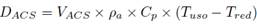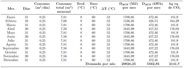 Donde: DACS= Demanda de ACS (J) VACS= Volumen de consumo de ACS ( ρa= Densidad del agua 1000 kg/m3 Cp= Calor específico del agua (4187 J/(kg·ºC)) Tuso= Temperatura de consumo (ºC) Tred= Temperatura de la red (ºC)