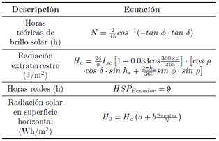 ACS; con los datos de radiación medidos se modela aplicando las ecuaciones de