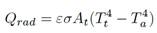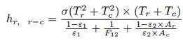 Donde: ε1 es la emisividad del tubo receptor. ε2 es la emisividad del tubo de cubierta. F12 es el factor de visión. Tc es la temperatura de la cubierta. Tr es la temperatura del receptor.