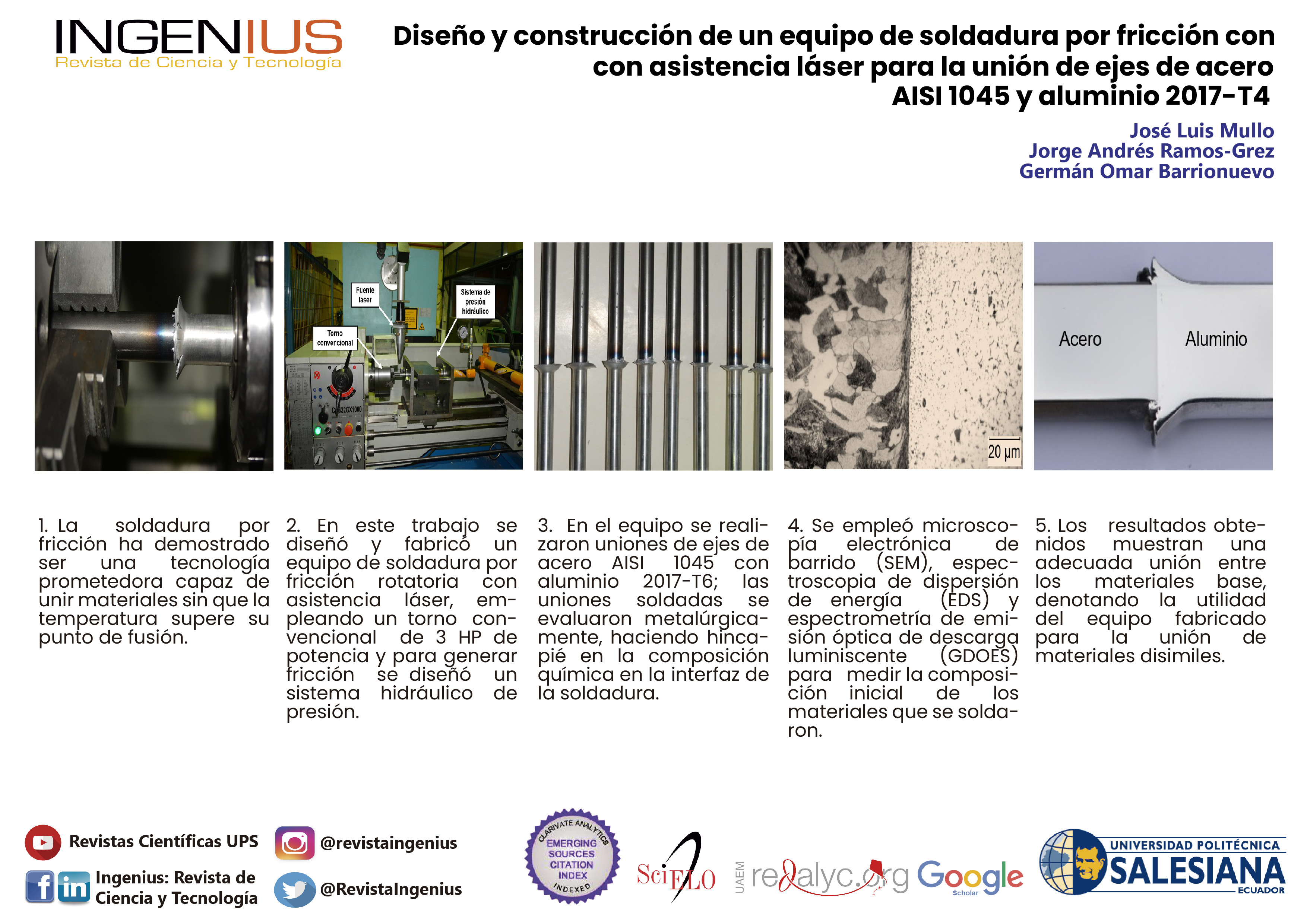 Design and construction of a friction welding equipment with laser assistance for the joint of AISI 1045 steel and aluminum 2017-T4 shafts